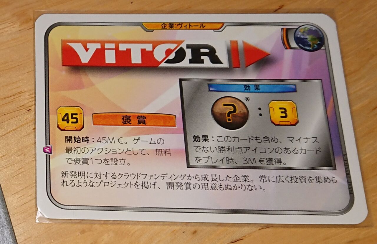 19年9月6日 火星をテラフォームして、その貢献度によって勝敗を競うゲームです。 プレイヤーは火星のテラフォーミング事業に参加する企業の1社になります。 アクションカードをプレイして、火星に海を作ったり、森を作って酸素を増やしたり、気温を ゲームに大きな効果を及ぼすカードです。他人に攻撃もできたりします。 基本的にはプロジェクトカードと同じです。 *置き方 イベントカードは効果を適用した後、裏向きで自分の前に置きます。 イベントカードはプレイ後、そのタグを参照できません。
